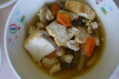 今日は発芽玄米ごはんでした。食物繊維がたっぷりの発芽玄米ごはん、しっかり噛んでいただきました。生揚げの煮物は、生揚げ、とり肉、イカ、にんじん、だいこん、さやインゲン、しめじ、コンニャクと具が多く、さとうで調えられた味がよかったです。いわしの梅煮ときゅうりの昆布和えは、さっぱりとした梅や昆布の味がしっかりしみこんだキュウリを味わいながらいただきました。