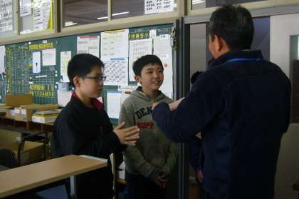 6年生が、お世話になった先生方にお礼の手紙集を手渡しに職員室にきました。