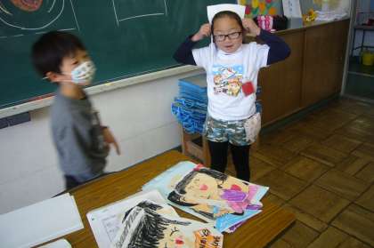 ペアの6年生の顔を描きました。