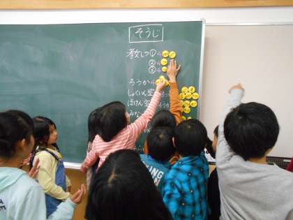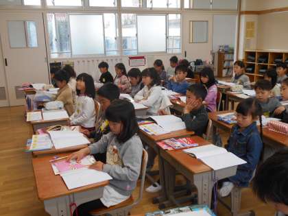 漢字練習の仕方、ノートの使い方について、説明を聞きました。真剣な表情です。