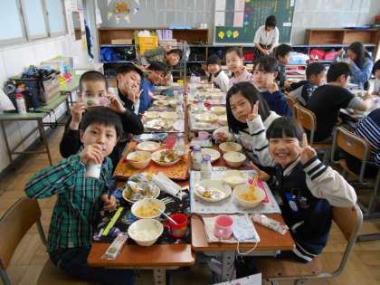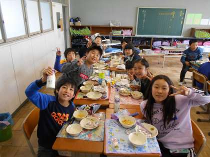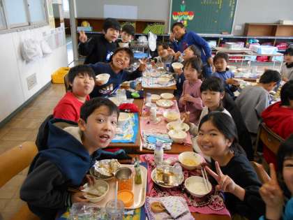 5年生の給食です。おいしい給食に思わず笑みがこぼれます。