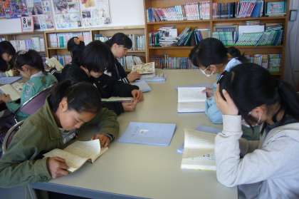 貸し出し処理を済ませた後、一心に読書しています。