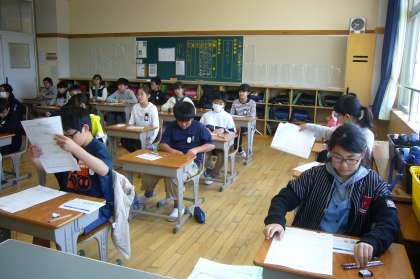 解答用紙に児童個人シールを貼って、1教科45分での解答です。