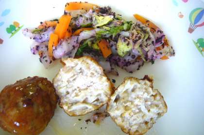 今日は高野豆腐の卵とじでした。高野豆腐の卵とじは、味がしみこんだ高野豆腐にたまごのやわらかさがほどよく、やさしい味でした。ごぼうのこりこり感がいいごぼうつくねや、ゆかりの風味がきゅうりを引き立てているきゅうりのゆかり和えもおいしくいただきました。