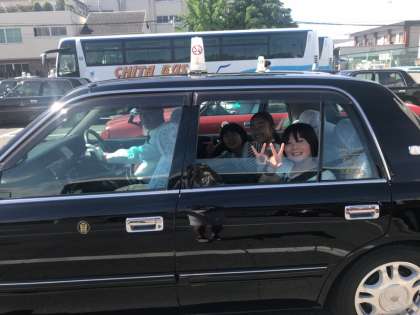 とてもいい手天気です。タクシーに乗って,行ってきま〜す。