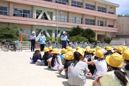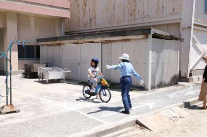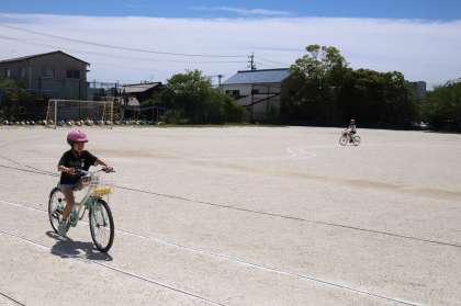 2・3時間目に4年生の自転車訓練を行いました。3名の交通指導員さんと19名の保護者の皆様にも協力していただき,ありがとうございました。左右の確認はもちろんですが,後ろもしっかりと確認しましょう。そのときに注意するのは,車が走っている方を見ることです。お家側や壁側を見ても…。あとはスピードの出し過ぎと,止まっているときにはしっかりとブレーキをかけておくことが大切です。これらのことに気をつけて,安全に運転しましょう。