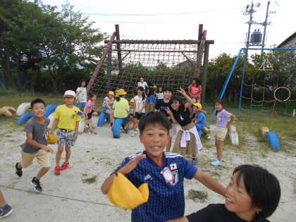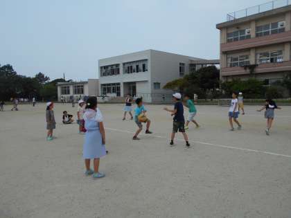 ドッジボールやぐるぐるじゃんけんなど、5年生が考えてくれた遊びで楽しみました。