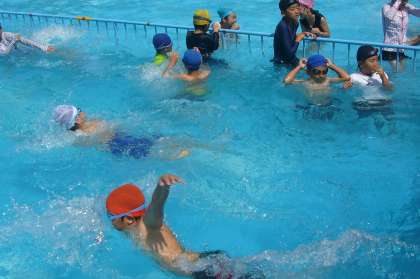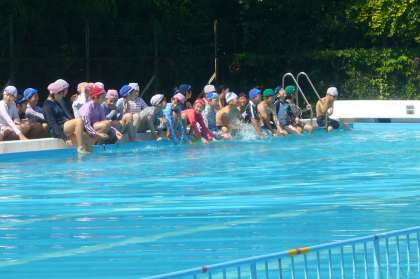 梅雨の間の貴重な晴れ間、気温も上がり、水泳指導を行っています。