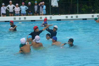 実行委員が計画した赤・白対抗の騎馬戦と学級対抗の宝拾いを行い、大いに盛り上がりました。