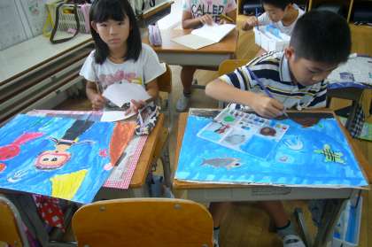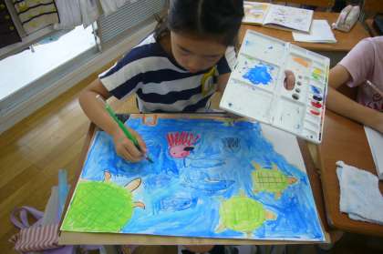 「みらいにのこそう あおいうみ」をテーマに描いています。