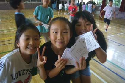 朝、登校してきたときに生活委員としっかりあいさつをするとカードがもらえ、カードが3枚以上たまると、生活委員から賞状がもらえます。