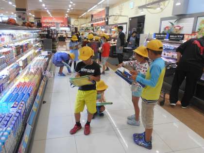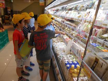社会科の学習で,ヤマナカの見学をしました。バックヤードにも入れていただき,お店の仕組みや,いろいろな工夫を知ることができました。お客さんに声をかけられ,「社会の勉強で来ました。」と答える場面もありました。