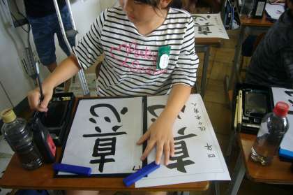 心を落ち着かせ、姿勢よく、ていねいに書きました。