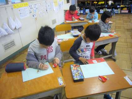 名前を漢字で書いたり絵をていねいに書いたりと、がんばっています。