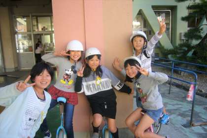 タイヤロープや一輪車で遊ぶ子どもたち、元気いっぱいです。