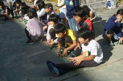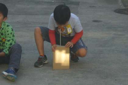 日かげに置いた紙に鏡で太陽の光を当てると温度はどうなるのかを調べたり、複数の鏡で太陽の光を集めた場合はどうなるのかを調べたりしました。
