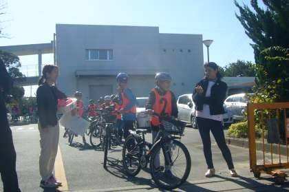 冷たい風が吹く中、交通安全授業の第3段、自転車実地訓練を行いました。