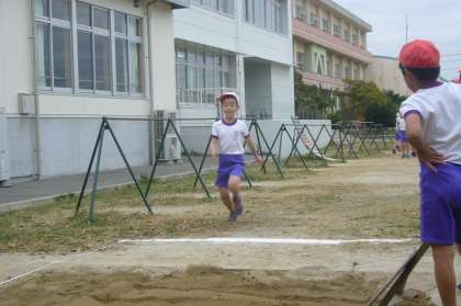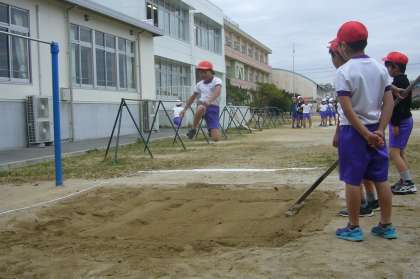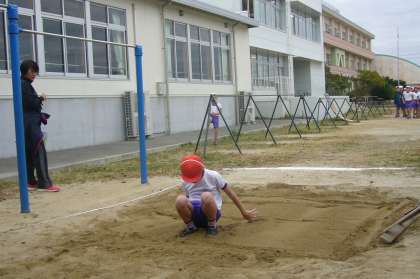 走り幅跳びの記録をとりました。