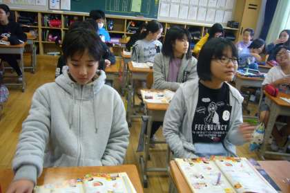夏休みにどこに行き、何をした・食べたかをビンゴゲームの要素を取り入れ、楽しく学びました。