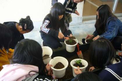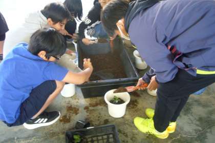 割り当てられた苗を、1、3年生は学年花壇に、2・4〜6年生は鉢に植え、育てていきます。