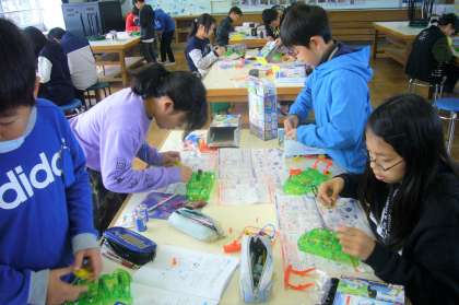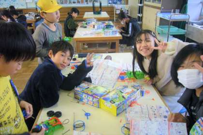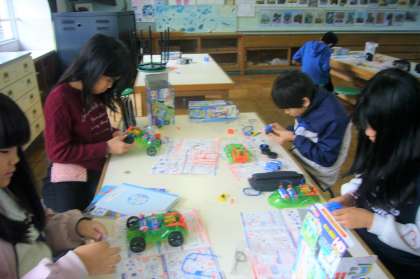 まずは教材のモーターカーを組み立てました。