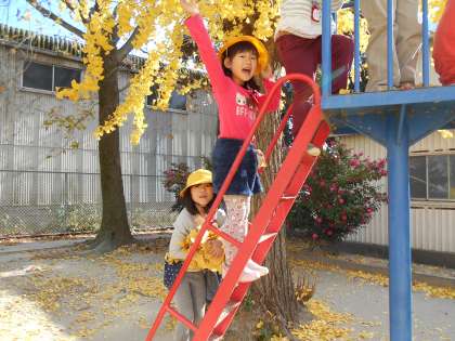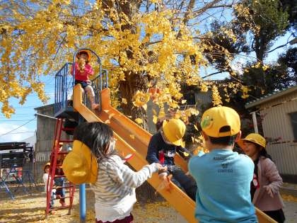 はっぱを集めては、楽しいあそびをくりかえします・・・・