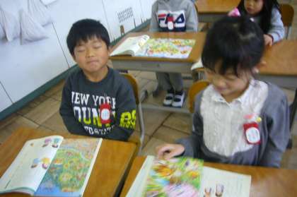 教科書の絵の中から知っているお話を見つけ、みんなで話し合いました。