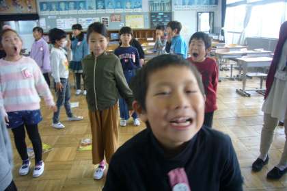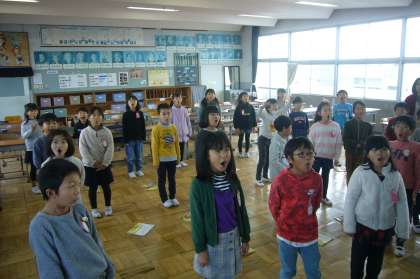 校歌を歌い、のばす部分の歌い方を練習しました。
