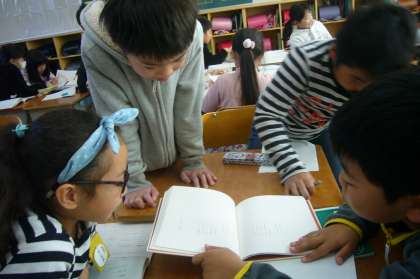 図書室から借りてきた詩の本をグループで読み合いました。