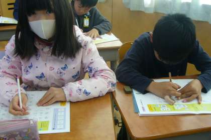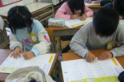 文字の組み立て方について学び、組み立て方に気をつけながらていねいに漢字を書きました。