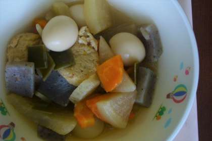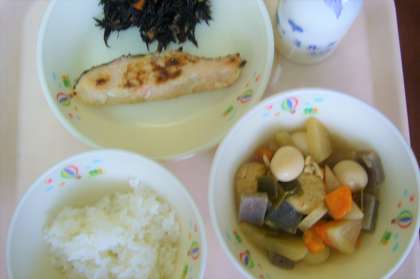 今日は関東煮でした。根菜類とがんもどきがたっぷりでおいしくいただきました。鮭の塩こうじ焼きはほどよい塩加減で、ひじき炒めは飽きない素朴なおいしさでした。