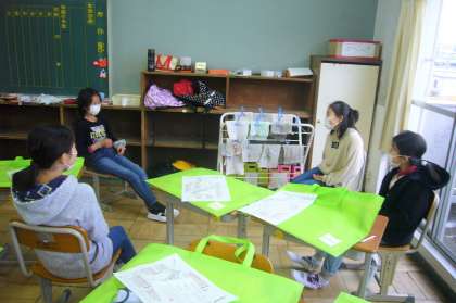 掃除の時間では、少ない人数ながらもしっかり掃除をしています。