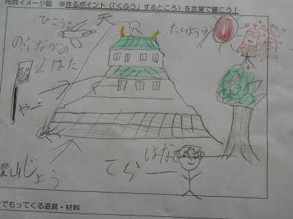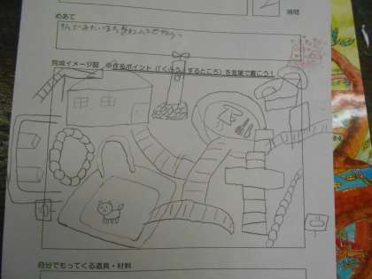 どんな町に住みたいか、イメージをふくらませ、設計図におこしてから作品づくりに取り組みました。