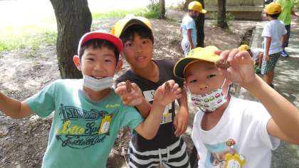こちらは、せみの抜け殻集めに、カニつかみ・・・