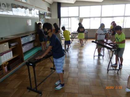 大規模改修に備えて、清掃の時間に机や椅子等の移動をしています。今日は音楽室です。5・6年生が楽器を運搬したり、掲示物をはずしたりしてくれました。