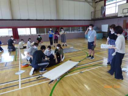 訓練の前半は、心肺蘇生法、AEDの操作訓練でした。後半は先生たちで行うシミュレーション訓練です。