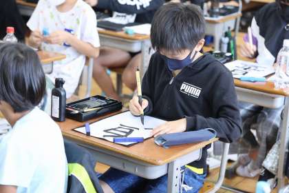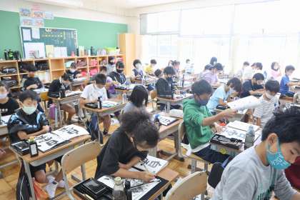 5年2組では、文字の大きさに気をつけて「白雲」を書いていました。2枚清書をしてから、直すところのチェックをして、最後にもう1枚清書をしました。