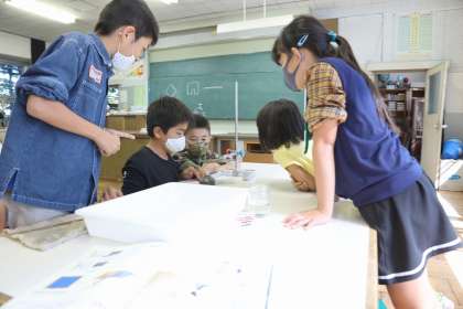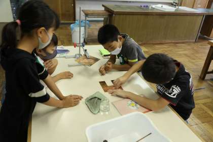 4年2組では「もののあたたまり方」の実験をしました。班で協力して、2枚の銅板にロウを塗ったり、金属の棒にロウを垂らしたりして実験の準備をしました。