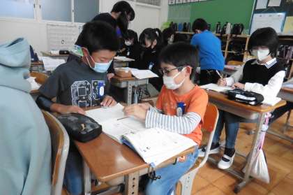 5年2組は通分のしかたについて勉強しています。