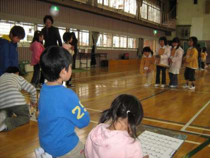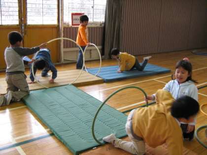 体育館ではボーリング,フラフープ,双六,竹とんぼ,