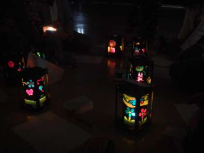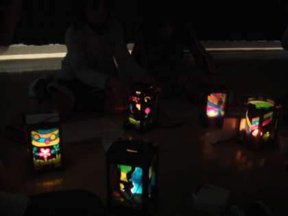 視聴覚室を真っ暗にして,ランプをともしました。