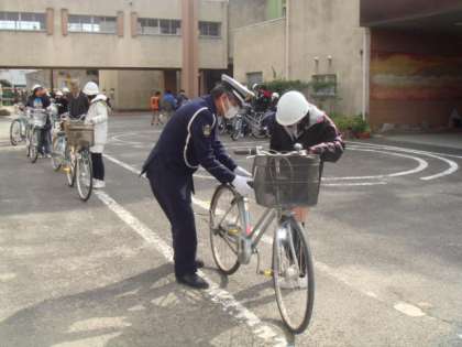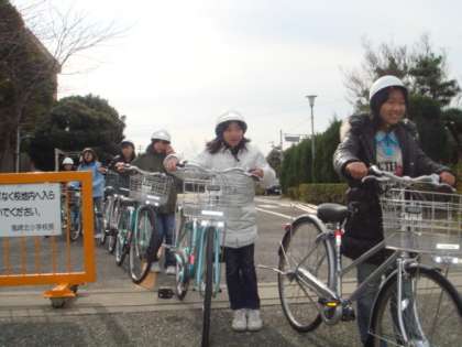 本校から鬼崎中学校への通学路を自転車で走りました。