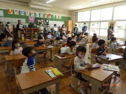 午後からは授業参観です。1年生はとっても張り切ってます。お母さん、お父さんが発表の様子などをスマホで撮影しておられました。