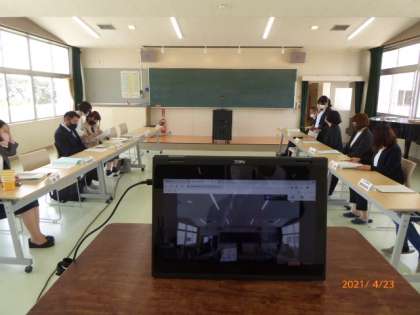 視聴覚室から各教室に映像を送る形でPTA総会を開催しました。前日から何度もテストをして今日に臨みました。うまく映像や音声を届けることができました。
