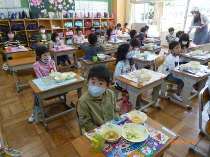 4/26 給食の準備 1年生