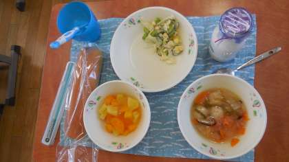 今日はシャキシャキのえだまめサラダにとろんとのどごしのよいとりだんごスープ。