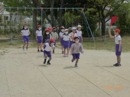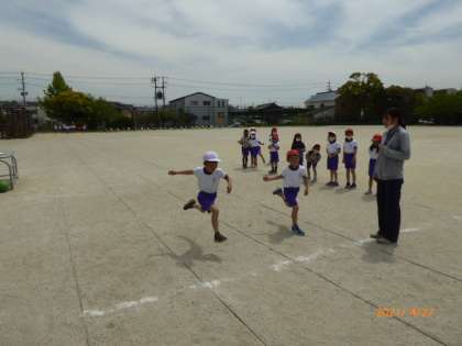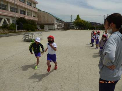 2年2組はスポーツテストの種目の50メートル走に挑戦中です。応援でいっそう力がみなぎります!