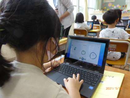 「KANDINSKY」は、人名で、抽象画の画家です。子どもたちが丸や三角、四角などを指で描くと、それに近い抽象画が表示されます。画面上に次々と抽象画の世界が広がります。おまけに、再生ボタンをクリックすると、その絵が点滅して、ピコーン、などとそれぞれ違った音が鳴ります。これはおもしろい!