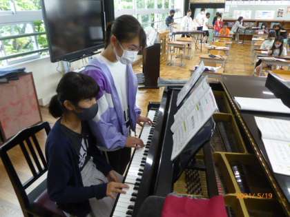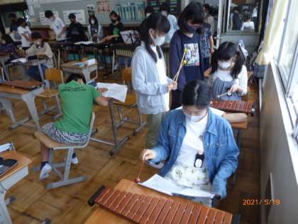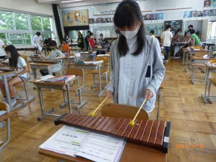 6年2組は、音楽で楽器演奏に挑戦です。曲は「マルセリーノの歌」です。感染予防対策としてなので、鍵盤楽器、打楽器が中心となります。