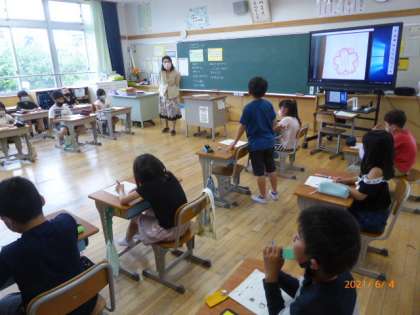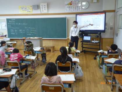 学校訪問での3年生の様子です。3年1組は道徳で、自分らしさを大切にして、失敗しても前向きに生活していこうとする気持ちを高めました。3年2組は算数で、棒グラフの目的に合った目盛りの取り方について考えました。